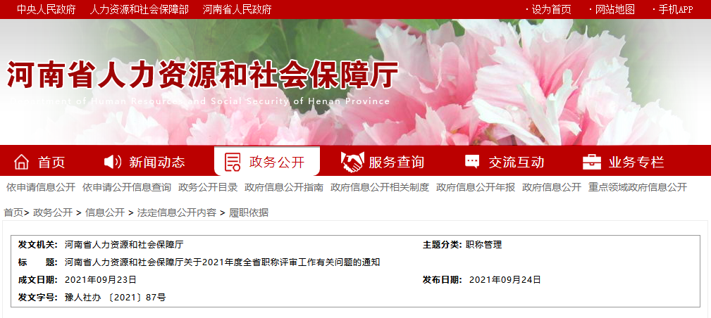 河南省人力資源和社會保障廳關(guān)于2021年度全省職稱評審工作有關(guān)問題的通知